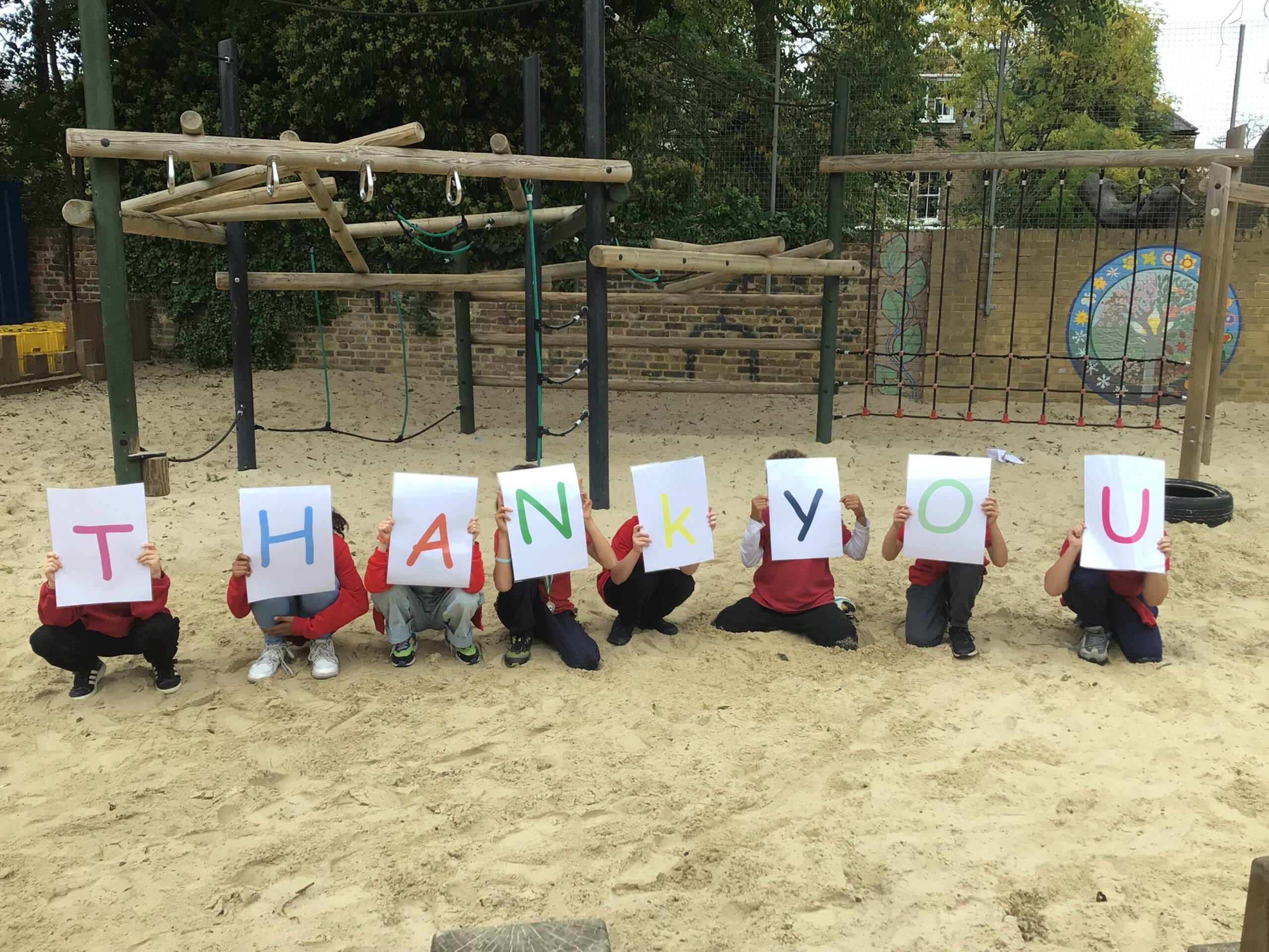 The school very kindly sent us this lovely photo of the children showing their appreciation, and we wanted to share it with everyone.